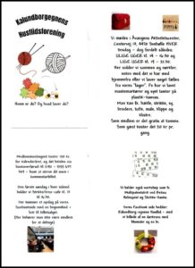 02.december 2025 kl. 14.00 – 16.30: Kalundborg Husflidsforening mødes i Svebølle Aktivitetscenter Åvangen for at sidde sammen og nørkle – Klik på opslaget