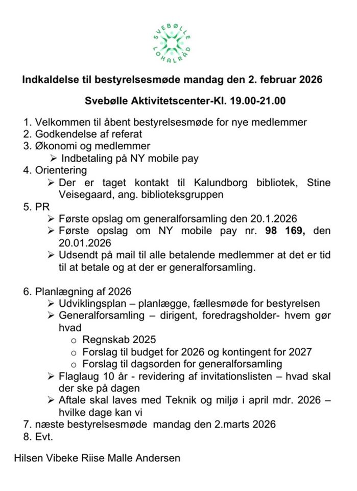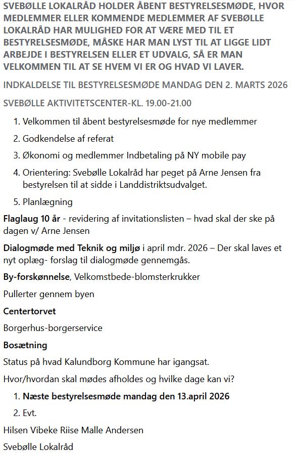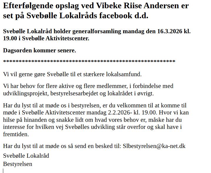 Svebølle Lokalråd bringer d.d. dette opslag på facebook:
