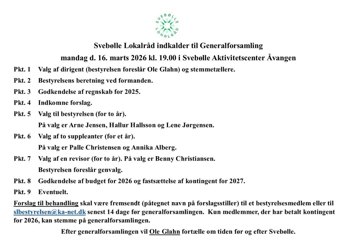Læs Svebølle Lokalråds nyheder her: Svebølle Lokalråds facebook